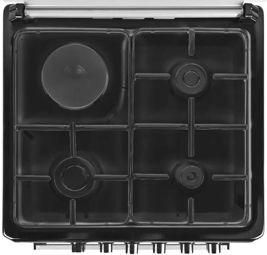 Габариты плиты (ШхВхГ), см: 60х85х60; Объем духовки: 65 литров; Газовые конфорки: 3 шт +1 шт электрическая; ГК. Духовка — электрическая; 2-слойное остекление дверцы духовки; Никелированная решетка духовки; Эмалированный противень — 2 штуки;