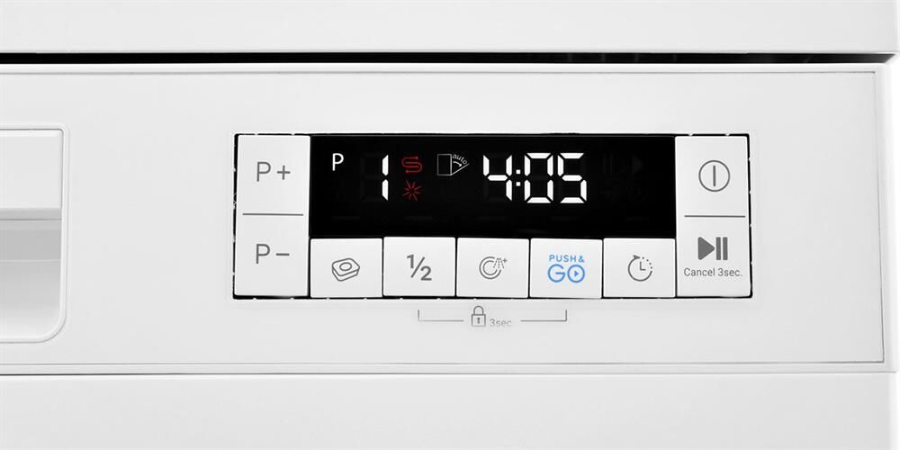 вместимость 14 комплектов посуды, уровень шума 48Дб, среднее потребление воды за цикл 11,5 л, 6 программ, коллекторный мотор, неполная защита от протечек (Overflow), кнопочный тайм-дисплей D1, отсрочка запуска 1-24 часа, режим половинной загрузки, автооткрывание дверцы, белый цвет