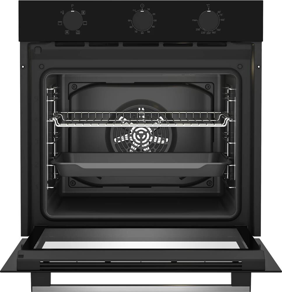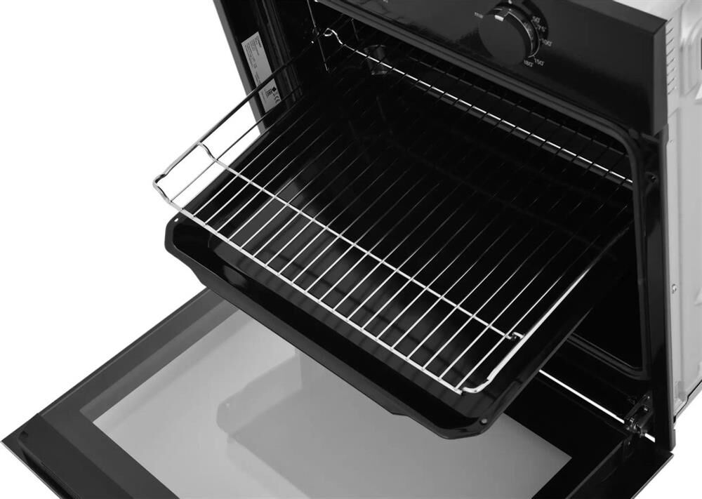 Электрический духовой шкаф; 6 программ; дисплей; поворотные переключатели; система очистки паром; металлические направляющие; объем — 72л.; 2 стекла дверцы; 1 решетка; 1 противень; цвет — черный