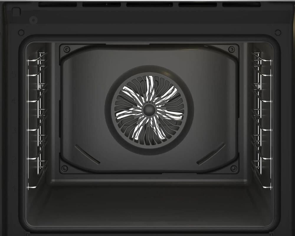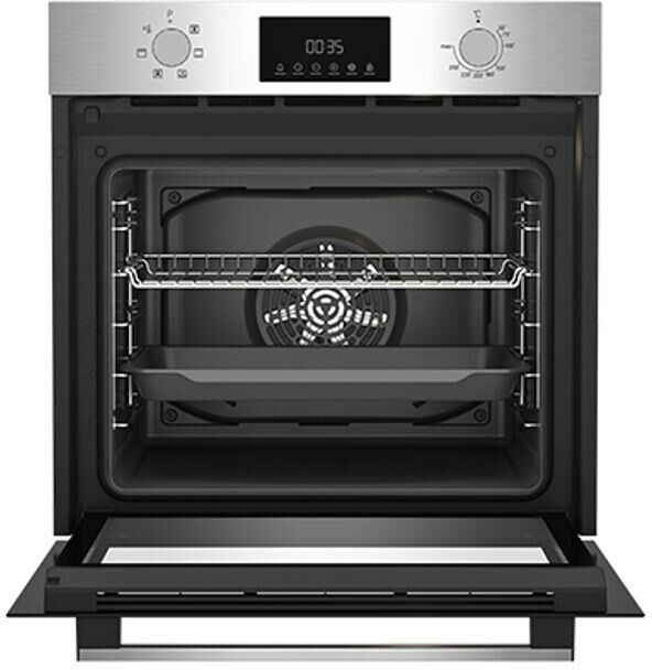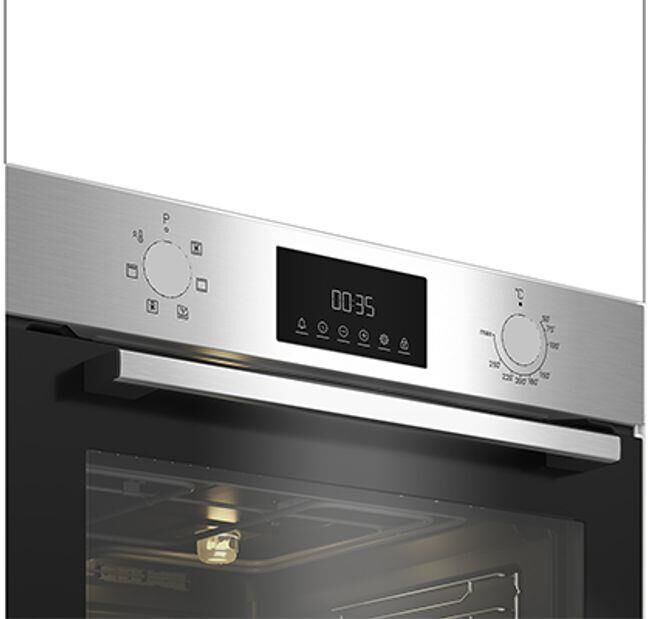 Электрический духовой шкаф; 6 программ; дисплей; утапливаемые поворотные переключатели; система очистки паром; металлические направляющие; объем — 72л.; 2 стекла дверцы; 1 решетка; 1 противень; цвет — нержавеющая сталь