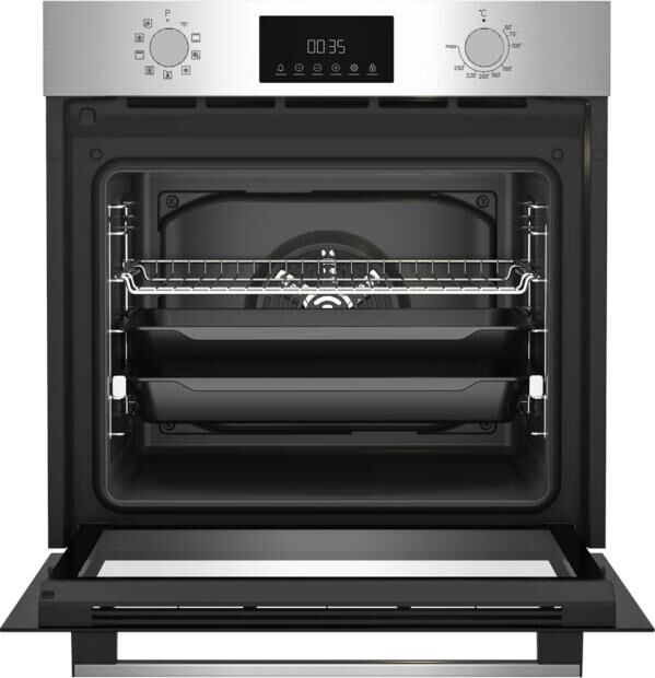Размеры без упаковки (ВхШхГ), см — 59,5×59,4×56,7. Электрический духовой шкаф; 8 программ; дисплей; утапливаемые поворотные переключатели; каталитическая очистка; телескопические направляющие на одном уровне; объем — 72л.; 3 стекла дверцы; 1 решетка; 1 противень; 1 глубокий противень; цвет — нержавеющая сталь