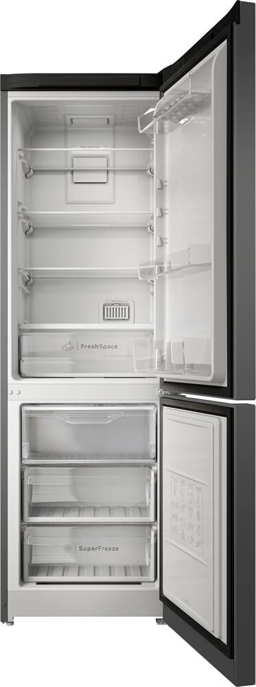 Система охлаждения: Total No Frost; функция Push&Go, электронное управление (дисплей), 1 ящик для овощей и фруктов; подставка для яиц,; контейнер для льда, сверхпрочные полки (до 100 кг), LED освещение, боковая интегрированная ручка с нанесением TicTac; класс энергопотребления — A; Потребление электроэнергии (кВт/24ч.) — 0,996; Общий полезный объем (л) — 298; Полезный объем холодильного отделения (л) — 223; Полезный объем морозильного отделения (л) — 75; Возможность замораживания (кг/24 ч.) — 2,5; Время сохранения температуры без электроэнергии (ч.) — 13; Климатический класс — N,ST; Размеры (ВхШхГ) (см) — 185x60x64; Цвет — Темно серый