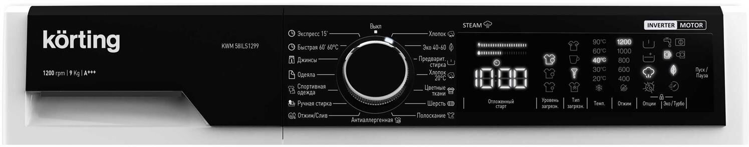 Стиральная машина (с функцией пара) с фронтальной загрузкой, ГЛУБИНА 58 см, загрузка 9 кг, скорость отжима 1200 об/мин, функция STEAM ASSIST, инверторный двигатель, сенсорное управление в поворотным JOG регулятором, технология TWIN JET, барабан PEARL, Ци