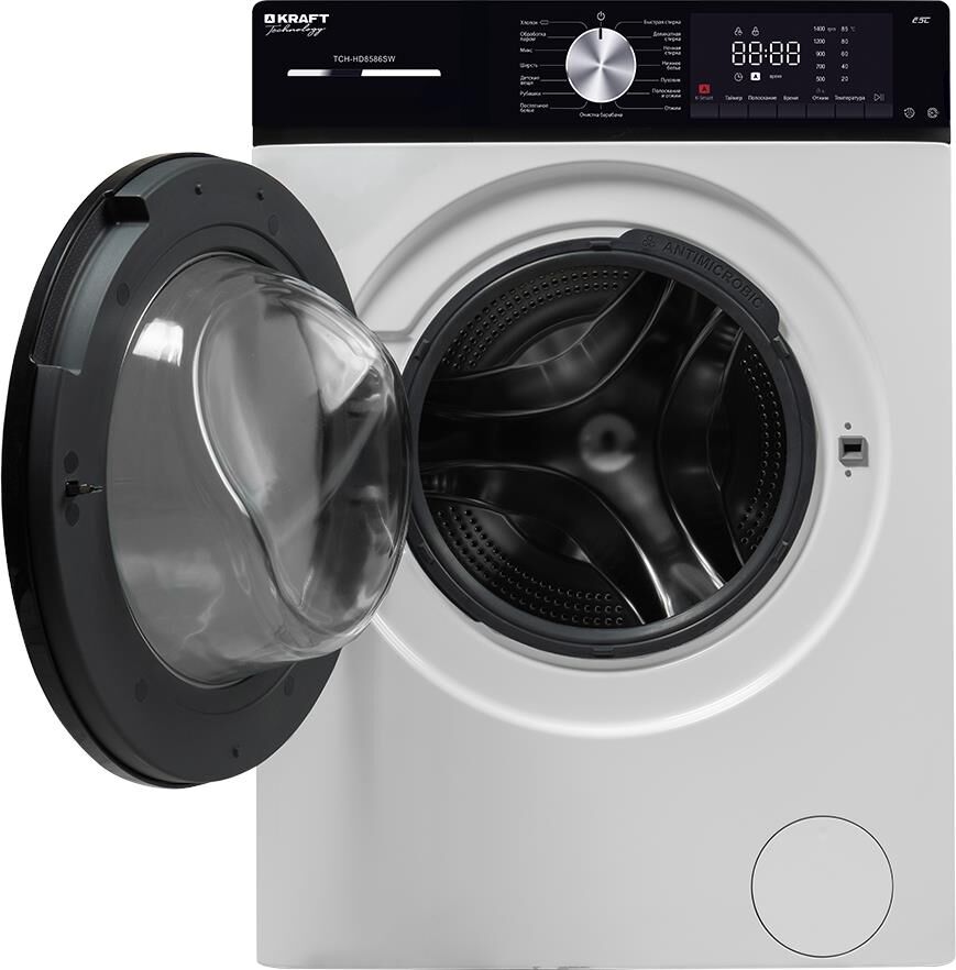 KRAFT Стиральная машина TCH-HD8586SW, с фронтальной загрузкой, 8кг, 1400об/мин, с паром, инверторная