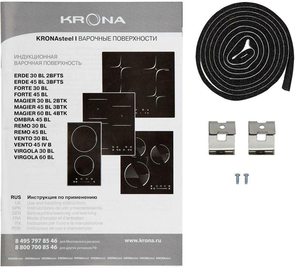 KRONA Индукционная варочная поверхность Erde 30 BL 2BFTS, конфорок: 2 шт., стеклокерамика, независим