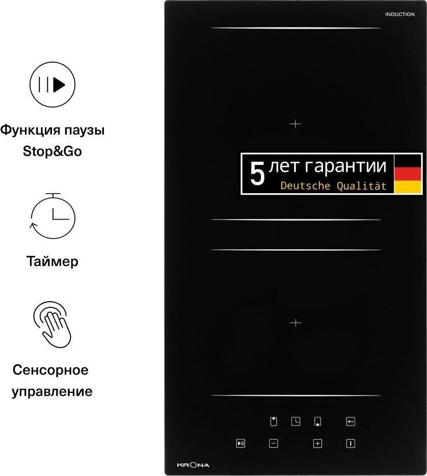 Нагревательные элементы: индукционного нагрева Цвет: Черный Материалы: стеклокерамика Производитель стекла: Kanger Линейка: Racio Срок службы: 7 лет Преимущества: * Функция паузы Stop&Go * Блокировка панели управления * Таймер отключения на каждую зону нагрева от 1 до 99 минут Ширина встраивания, мм: 300 Встраиваемая часть (В*Ш*Г), мм: 52*260*490 Ниша для встраивания (В*Ш*Г), мм: 35 min*265*495 Лицевая панель (В*Ш*Г), мм: 4*288*520 Минимальная толщина столешницы, мм: 35 Тип поверхности: индукционная Расположение управления: фронтальное, спереди по центру Управление: сенсорное (Touch Control) Количество конфорок: 2 Количество режимов нагрева: 9 Таймер: 1-99 мин. Защита от детей: да Защита от перелива: да Дисплей: цифровой Индикаторы остаточного тепла: да Защита от перегрева: да Диаметр, мм и мощность зон нагрева передняя левая, кВт: 160 мм * 1,5 кВт Максимальная потребляемая мощность, кВт: 3.5 Диаметр, мм и мощность зон нагрева задняя левая, кВт: 210 мм * 2 кВт Дополнительно: функция паузы stop&go Вид: Индукци