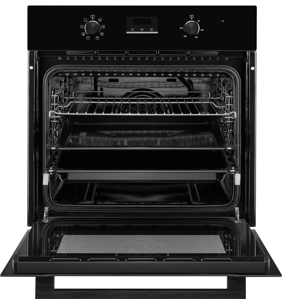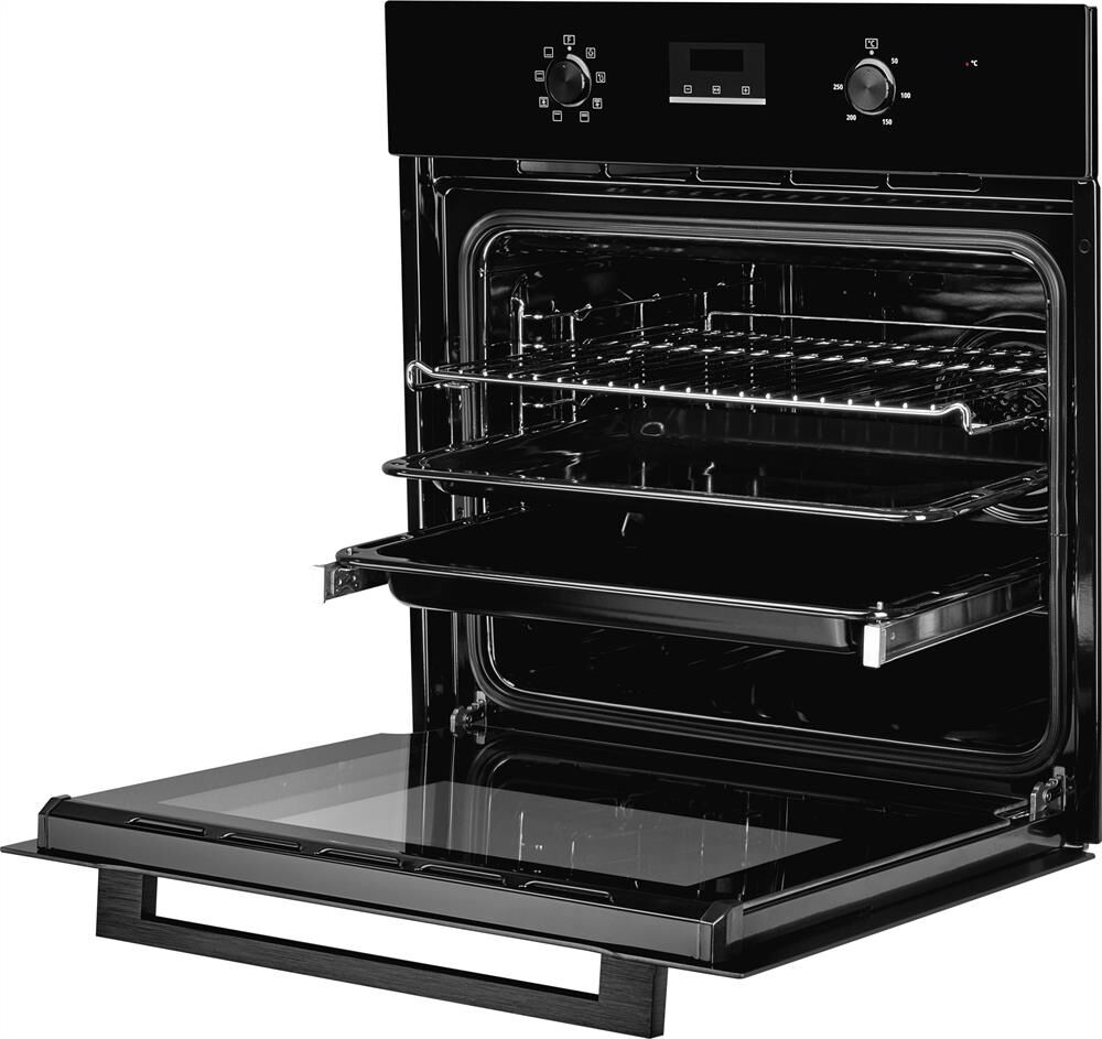 Тип духовки: электрическая. Тип управления: независимое. Переключатели: поворотные. Мощность подключения: 3000. Объем духовки: 70. Класс энергоэффективности: A. Очистка духовки: Гидролизная. Материал внутреннего покрытия духовки: эмаль легкой очистки. Вид таймера: электронный. Тип гриля: электрический. Количество стекол в дверце: 3. Освещение духовки: есть. Тип освещения: светодиодное. Многофункциональная духовка: да. Количество программ духовки: 8. Открывание дверцы: вниз. Особенности: Съемная дверца духового шкафа. Тип телескопических направляющих: 1-уровневые. Дополнительно: Стандартный противень, Глубокий противень, Решетка для гриля. Вес (нетто): 31. Габариты упаковки (ед) ДхШхВ: 0.69×0.62×0.66. Вес упаковки (ед): 34. Страна производства: Китай. Гарантия: 24 мес.. Размеры ниши для встраивания (ШхГхВ): 56 x 57 x 60 см. Размеры (ШхГхВ): 59.5 х 59.5 х 56.5 см. Цвет: черный. Функции: отсрочка старта, таймер, часы. Особенности конструкции: вентилятор охлаждения, полностью стеклянная внутренняя поверхность две