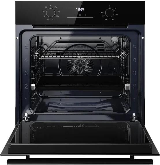 Духовой шкаф Kuppersberg HO 608 BB Glass, High-Tech, 78 л, поворотное управление, дисплей, таймер, 8 режимов, макс. температура 310 градусов, телескопические направляющие (на 1 уровень), цвет черный, цвет фурнитуры нержавеющая сталь