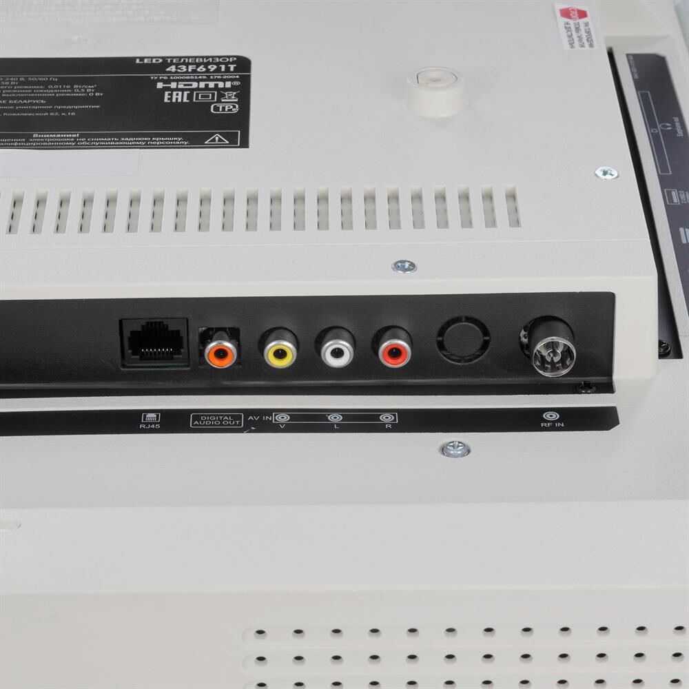 43" (108см) SALUT SMART TV, DLED, FHD (1920*1080), DVB-T2/C, Dolby AC-3; 16:9, яркость 250 кд/м2, контрасность 4000:1, 16.7 млн. цветов, аудио 2х7 Вт; 3xHDMI, 2хUSB, AV IN, ANT, COAXIAL, CI+ slot, выход под наушники, LAN(RJ-45); Wi-Fi; Bluetooth; USB-медиаплеер(PVR), телетекст, родительский контроль, Timeshift; VESA 200х100; цвет: белый
