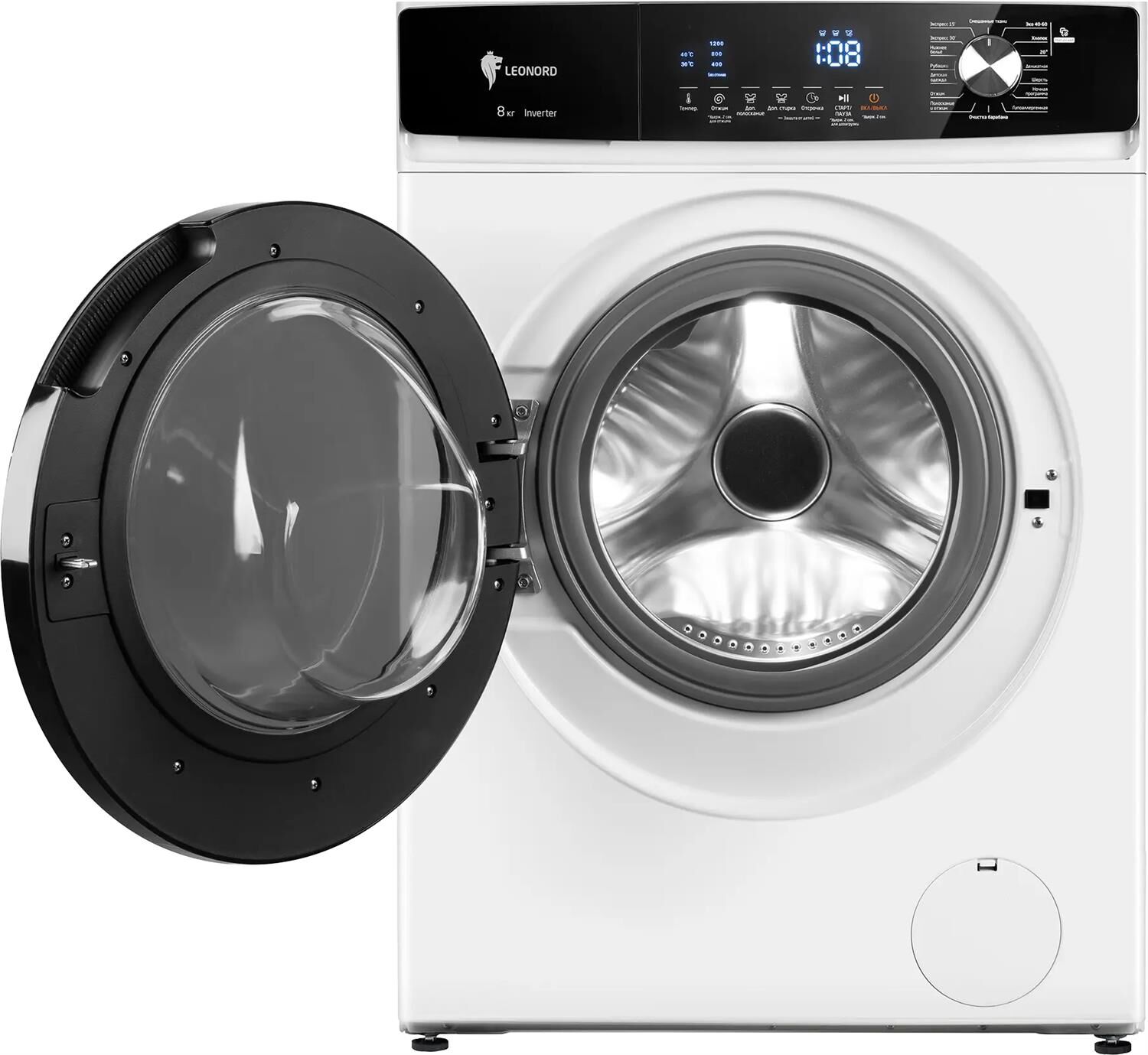 Мощность 2000 Вт Глубина 60 см Машинка для стирки автомат отдельностоящая Фронтальная загрузка Инверторный двигатель (BLDC) Максимальная скорость отжима 1200 об/мин Максимальная загрузка для стирки — 8 кг 16 программ стирки: Смешанная стирка、Эко 40-60、Хлопок、Холодная 20℃、Деликатная, Шерсть、Ночная программа、Гипоаллергенная、Очистка барабана、Полоскание+Отжим、Отжим、Детская одежда、Рубашки、Нижнее белье、Экспресс 30’、Экспресс 15′ Управление электронное Обработка паром Увеличенный размер дверцы Дисплей Температура воды:30/40/60/85℃ Уровень шума стирка 62 дБ/отжим 75 дб Отложенный старт Функция дозагрузки белья Программа самоочистки барабана Контроль дисбаланса Защита от протечек Защита от детей Kласс энергопотребления А+++ Класс эффективности отжима С Размер изделия (ШхГхВ): 598*608*845 мм Напряжение 220-240 В, 50-60 Гц Гарантия 1 год