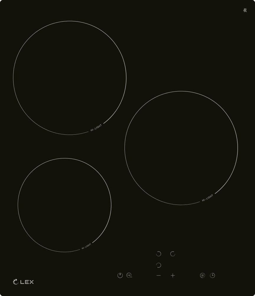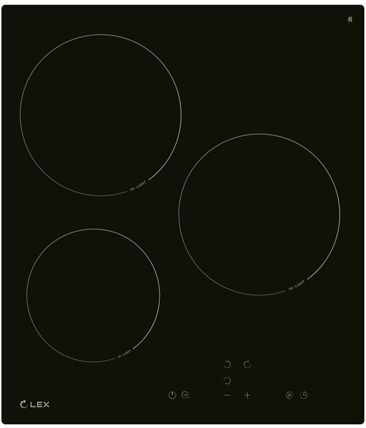 Тип: Электрическая варочная панель; Размер устройства (ВхШхГ): 5,1х45×52 см; Размер для встраивания (ВхШхГ): 42х49 см; Цвет: Черный; Управление: Сенсорное, Таймер; Нагревательный элемент: Hi Light; Материал: Стеклокерамика; Мощность: 4800 Вт; Количество конфорок: 3 конфорки; Защита от перегрева, Индикатор остаточного тепла, Кнопка блокировки панели; Длина силового кабеля: 100 см