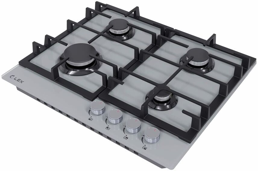 LEX Газовая варочная панель GVG 642-1 GR, 4 конфорки, закаленное стекло, серый