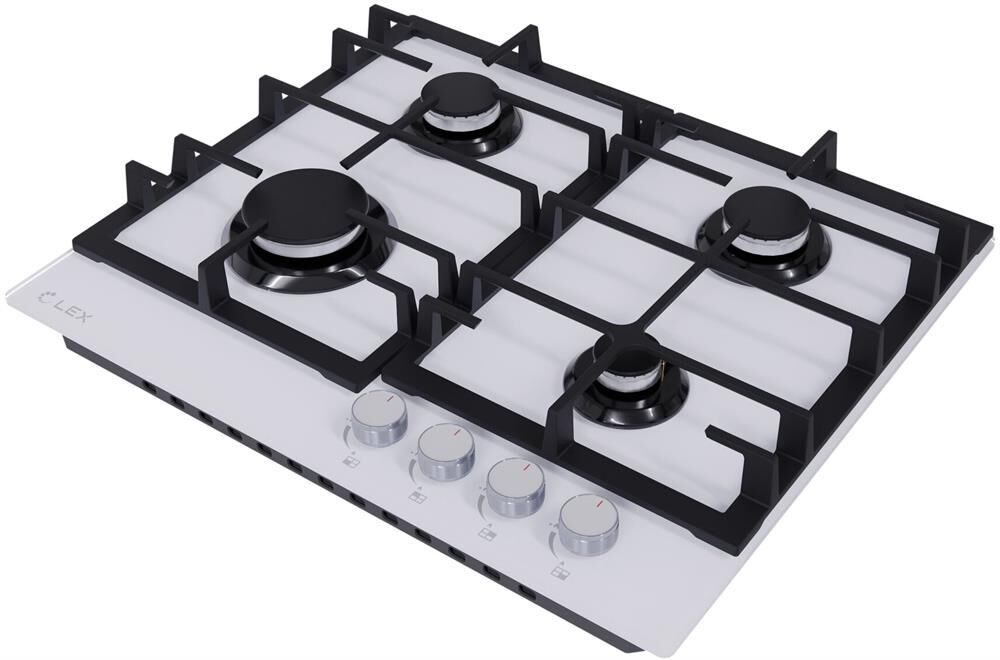 LEX Газовая варочная панель GVG 642-1 WH, 4 конфорки, закаленное стекло, белый