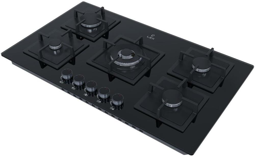 LEX Газовая варочная панель GVG 954 BBL, 5 конфорок, закаленное стекло, черный