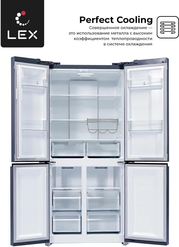 LEX Холодильник трехкамерный LCD450BMID Side by Side, инверторный синий металлик/черный