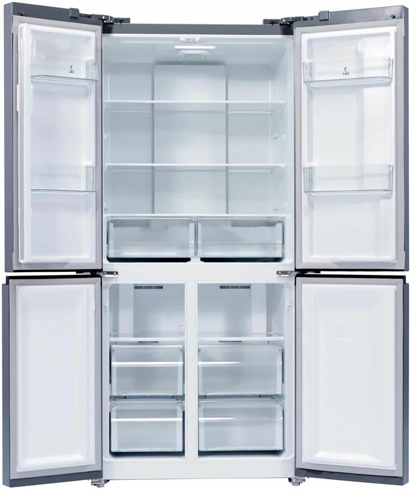 Количество камер: трехкамерный. Расположение морозильной камеры: снизу. Тип управления: электронное. Класс энергопотребления: A+. Система размораживания: No Frost. Общий объем холодильника: 417. Общий объем холодильной камеры: 288. Общий объем морозильной камеры: 129. Уровень шума: 42. Количество компрессоров: один. Хранение при отключении питания: 12. Мощность замораживания: 12. Количество полок: 2. Количество ящиков: 4. Количество полок: 2. Система размораживания: No Frost. Тип: Холодильник. Хладагент: R600a. Количество ящиков: 2. Вес (нетто): 92. Количество дверей: 4. Тип компрессора: инверторный. Габариты упаковки (ед) ДхШхВ: 0.9×0.68×1.9. Вес упаковки (ед): 101. Страна производства: Китай. Инверторный компрессор: есть. Количество полок на дверце: 4. Материал дверей: стекло. Наличие морозильной камеры: есть. Температура морозильной камеры max: -23. Температура морозильной камеры min: -15. Температура холодильной камеры max: 8. Температура холодильной камеры min: 2. Тип дисплея: внешний. Поверхность: глянц