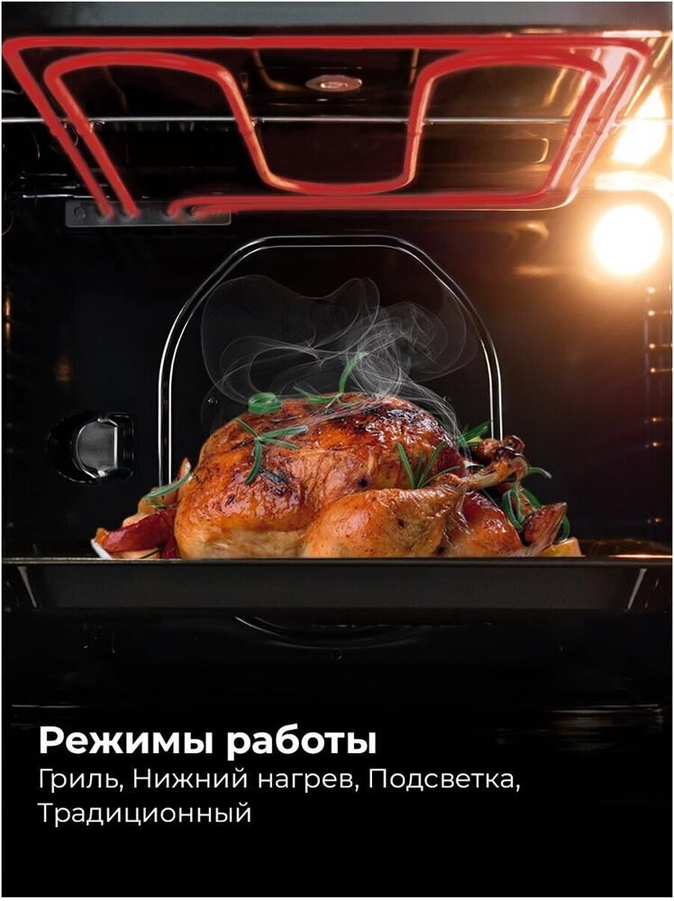 Цвет нержавеющая сталь * Размеры (ШхГхВ) 59.5 х 53 х 59.5 см * Размеры ниши для встраивания (ШхГхВ) 56 x 56 x 60 см * Вес (нетто) 27.5 кг * Переключатели поворотные * Мощность подключения 2200 Вт * Класс энергоэффективности A * Объем духовки 62 л * Максимальная температура 250 °С * Внутреннее покрытие духовки эмаль * Очистка духовки традиционная * Гриль * Таймер * Освещение духовки *