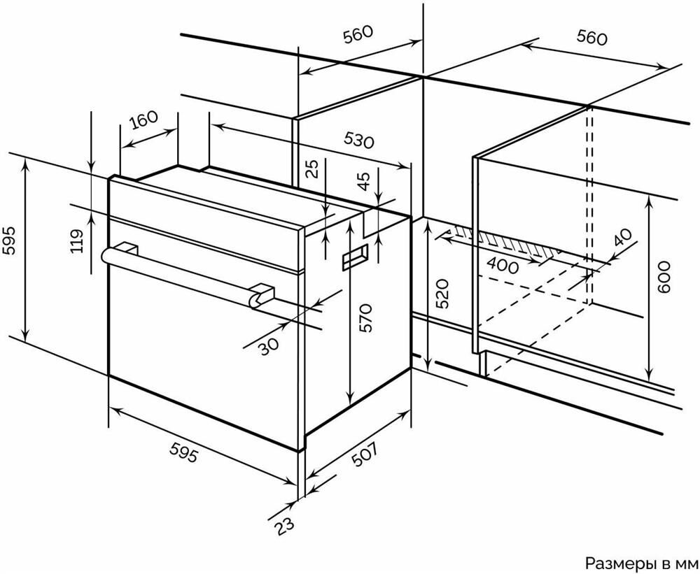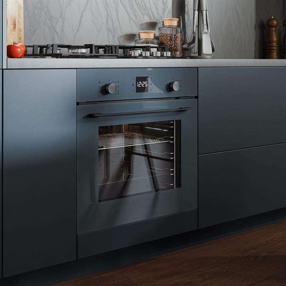 Механические ручки, сенсорное управление, объем 60 л, LED таймер, 7 функций (конвекция, традиционный, нижний нагрев, турбо гриль, турбо гриль с конвекцией, подсветка, размораживание), двойное остекление дверцы, традиционная очистка, в комплекте 1 решетка