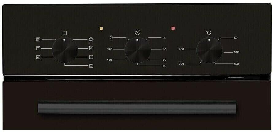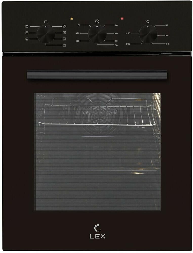 Габариты (ВхШхГ), см: 59,5х45х58; Размер для встраивания (ВхШхГ), см: 60х41,5х56; Тип духовки: электрическая. Тип управления: независимое. Переключатели: поворотные. Мощность подключения: 2000. Объем духовки: 53. Максимальная температура: 250. Класс энергоэффективности: A. Очистка духовки: традиционная. Материал внутреннего покрытия духовки: эмаль легкой очистки. Вид таймера: механический. Тип гриля: электрический. Мощность гриля: 250. Количество стекол в дверце: 2. Температура поверхности дверцы (макс): 68. Тип освещения: лампа накаливания. Количество ламп подсветки: 1. Мощность ламп подсветки: 25. Количество программ духовки: 7. Открывание дверцы: вниз. Съемная дверца. Дополнительно: в комплекте 1 решетка и 1 противень. Длина кабеля: 1.2. Цвет: черный. Режимы работы: гриль, конвекция, размораживание. Индикация: звуковая индикация. Функции: таймер. Переключатели: поворотные.