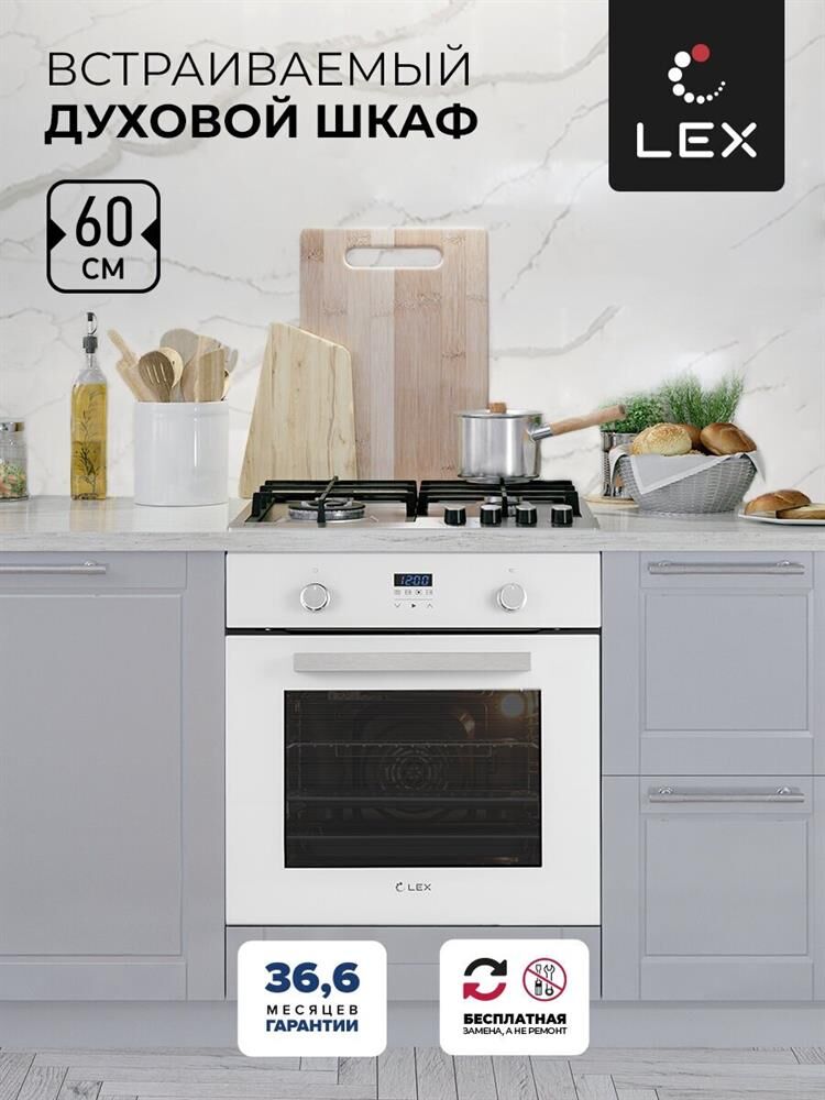 Размер устройства (ВхШхГ) 595х595х530 мм * Размер для встраивания (ВхШхГ) 600х560х560 мм * Вес в упаковке / без упаковки 30 кг./29 кг. * Объём 60 л * Цвет белый * Отделка Нержавеющая сталь, Стекло * Максимальная температура 250 °С * Класс энергопотребления А * Режимы работы: HD конвекция, Верхний и нижний нагрев с конвекцией, Нижний нагрев, Нижний нагрев с HD конвекцией, Подсветка, Размораживание, Традиционный, Турбо гриль, Турбо гриль с конвекцией * Дверца духовки Съемная. Внутреннее стекло легко вынимается * Стекло дверцы тройное * Управление: LED таймер, Сенсорное, Утапливаемые ручки управления с LED-подсветкой *