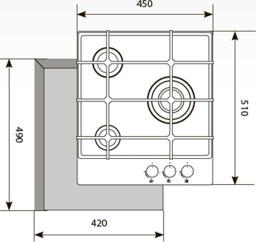 LEX GVG 431 BL Газовая варочная панель. Механическое управление, Электроподжиг. Материал: закалённое стекло. Материал решеток: чугунные. Конфорка WOK 1 х 3500 Вт. Конфорка быстрого нагрева 1 х 1750 Вт. Дополнительная конфорка 1 х 1000 Вт. Набор жиклёров для конверсии газа. Газ-контроль, подходит для магистрального и баллонного газа. Мощность 6250 Вт. Длина силового кабеля 100 см. Размер устройства (ВхШхГ) 95х450х510 мм. Размер для встраивания (ВхШхГ) 420х480 мм. Вес 9,5 кг.