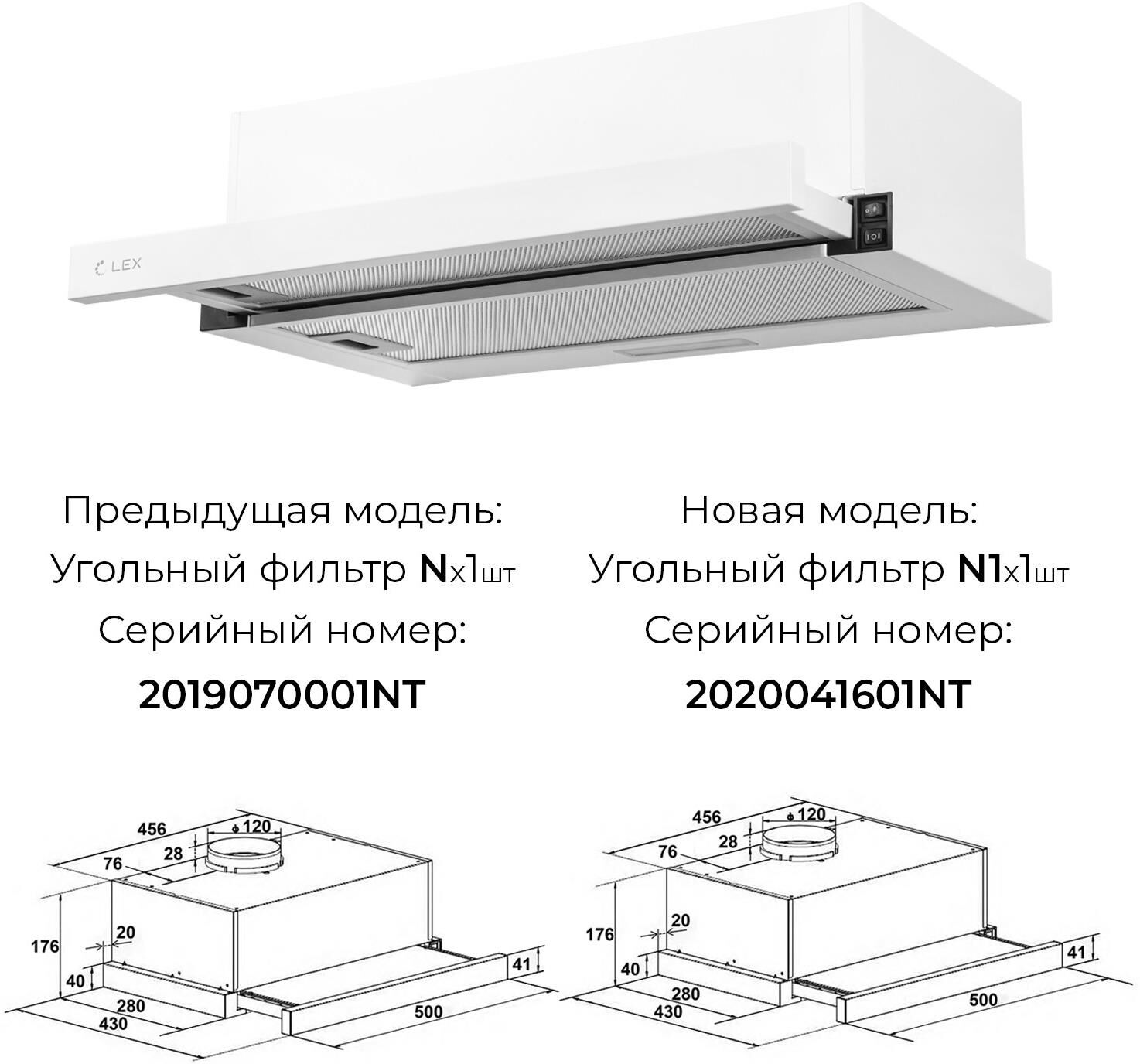 Свободный выход 570 — 650 м³/ч Вентиляция 490 – 570 м³/ч Рециркуляция 410 – 490 м³/ч Уровень шума 38 – 48 дБ Отделка Окрашенная сталь Количество скоростей 2 Управление Клавишное Освещение LED лампы 1 х 2,5 Вт Фильтр Алюминиевый (в комплекте), Угольный фильтр N/N1 * (х2) (опция) – *Фильтр N1 для моделей с серийными номерами начиная с 2020041601NT и далее Опции Мотор усиленной мощности, Тихий режим работы Диаметр воздуховода 120 мм Потребляемая мощность 102,5 Вт Давление 210 Па Ширина 500 мм Цвет White Вес в упаковке / без упаковки 6,5 кг / 5.5 кг Страна-производитель КНР Размер упаковки 335х565х225 мм.
