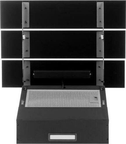 Производительность: 850 м?/ч, сенсорное управление, отделка — стекло, уровень шума 46 Дб, LED лампы 1х2 Вт, угольный фильтр L4x2 (опция), диаметр воздуховода -150 мм, страна-производитель — КНР Черный