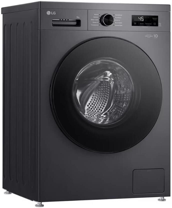 Габариты ВхШхГ, см: 85х60,5х55; Цвет: Графитовый серый; Загрузка: 9 кг; Тип загрузки: Фронтальная; Тип двигателя: Инверторный прямой привод; Тип управления: LED индикация; Максимальная скорость отжима: 1200 об/мин; Уровень шума в режиме Стирка: 55 дБ; Уровень шума в режиме Отжима: 75 дБ; Функция дозагрузки белья: Y; Класс энергопотребления: A; Класс стирки: A; Класс отжима: B; Мобильная диагностика Smart Diagnosis; Программы: быстрая стирка, гипоаллергенная стирка, стирка деликатных тканей, стирка смешанных тканей, стирка хлопка, стирка шерсти, полоскание + отжим, спортивная, хлопок+