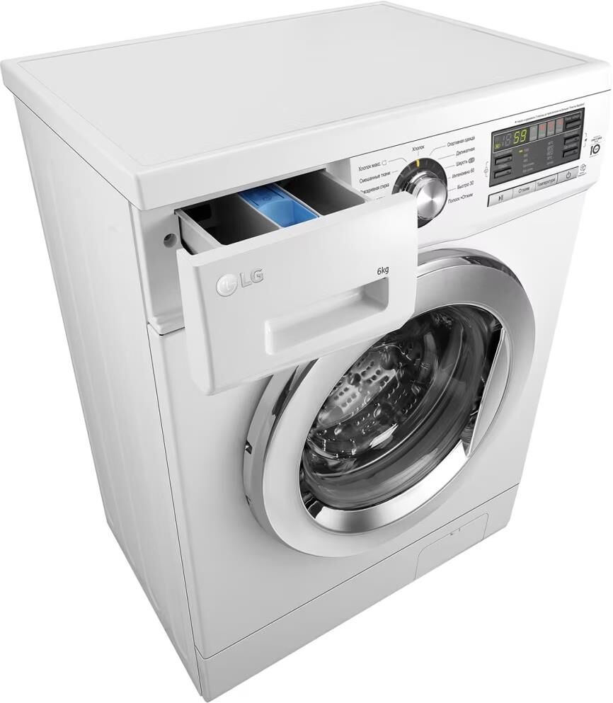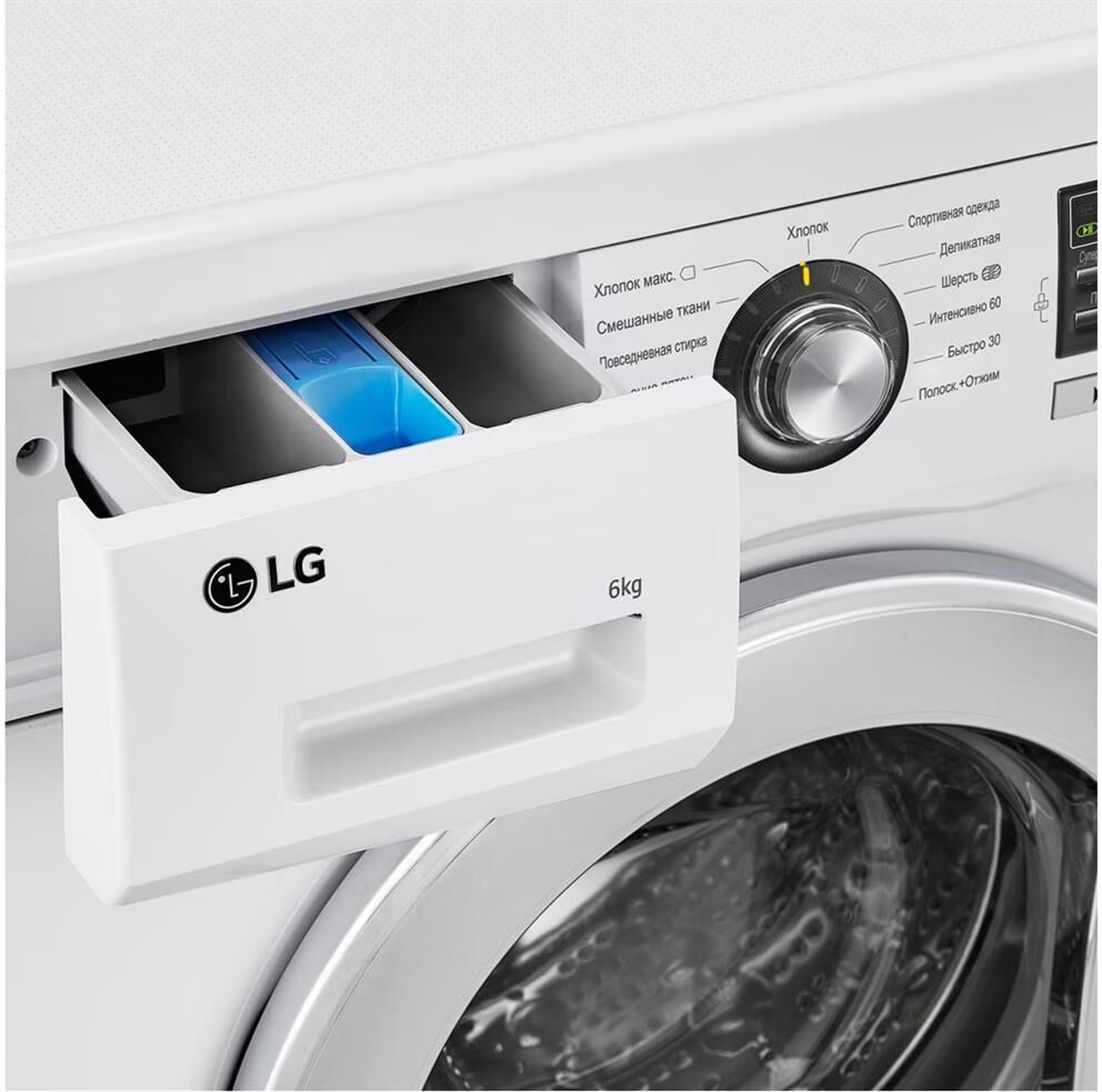 Габариты (ШxГxВ) 60x44x85см * Загрузка 6 кг * Максимальная скорость отжима (об/мин) 1000 * Кол-во программ 13 * Инверторный мотор с прямым приводом * Мобильная диагностика Smart Diagnosis * 6 движений заботы * Класс энергоэффективности А * Класс стирки А * Класс отжима В * Блокировка от детей * Функция очистки барабана * Цвет дверцы Хром. Цвет корпуса Белый *