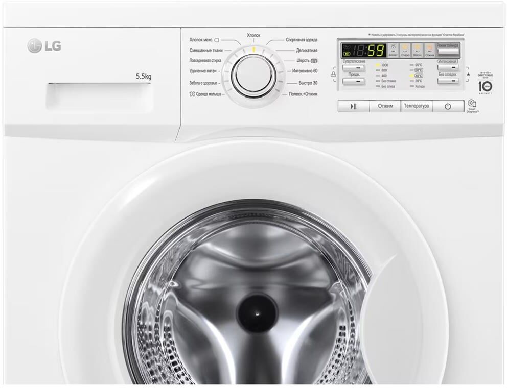 Габариты (ШxГxВ) 60x44x85 см * Загрузка 5,5 к * Макс. отжим 1000 (об/мин) * Кол-во программ 13 * Инверторный мотор с прямым приводом * Мобильная диагностика Smart Diagnosis * 6 движений заботы * Класс энергоэффективности А * Класс стирки А * Класс отжима В * Функция очистки барабана * Цвет дверцы/корпус Белый/Белый