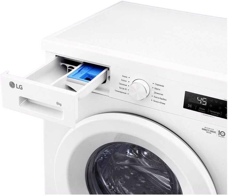 Габариты (ШxВxГ): 600 x 850 x 440. Максимальная скорость отжима: 1200. Загрузка: 6 кг. Цвет корпуса: Белый. Цвет панели: Белый. Цвет двери: Белый. Инверторный мотор с прямым приводом Inverter Direct Drive. Функция пара Steam. Функция очистки барабана. Уникальные программы: Гипоаллергенная. Быстро 30. Смешанная. Хлопок +. Деликатная. Спортивная
