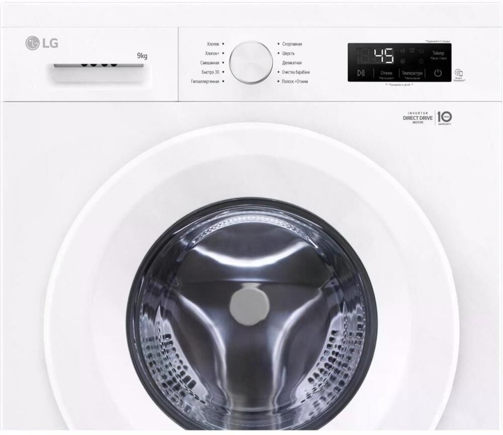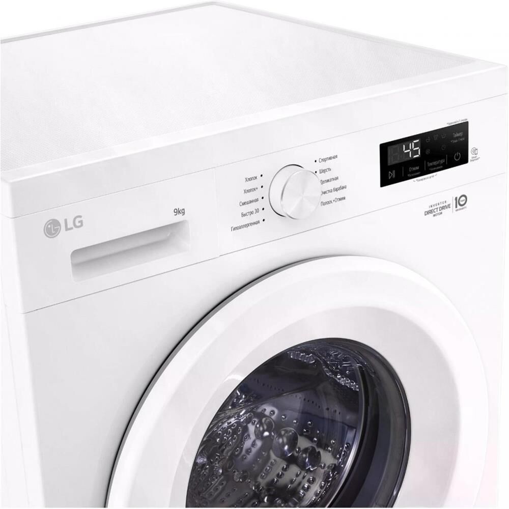 Габариты (ШxВxГ): 600 x 850 x 550. Максимальная скорость отжима: 1200. Загрузка: 9 кг. Цвет корпуса: Белый. Цвет панели: Белый. Цвет двери: Белый. Основные функции: Инверторный мотор с прямым приводом Inverter Direct Drive. Функция пара Steam. Функция очистки барабана. Уникальные программы: Гипоаллергенная. Быстро 30. Смешанная. Хлопок +. Деликатная. Спортивная.