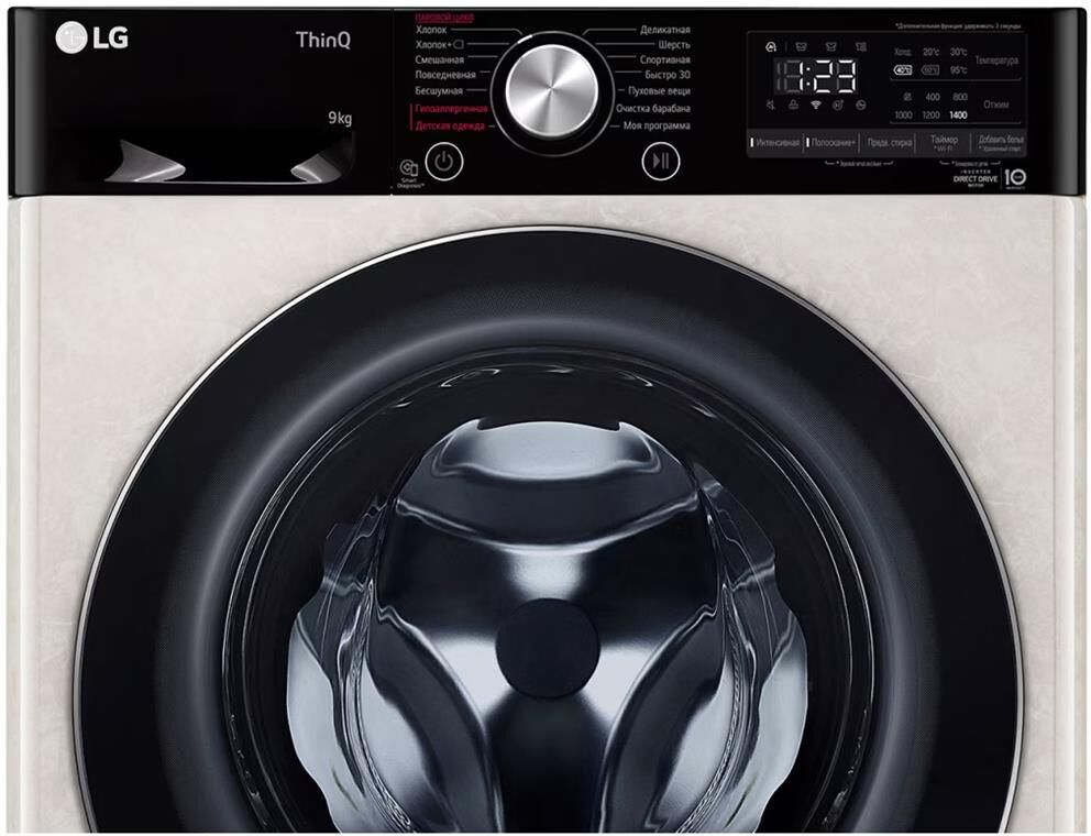 ШхГхВ: 60х56х85 см * Цвет бежевый * дозагрузка белья через основной люк * загрузка: 9 кг * отжим при 1400 об/мин * Количество программ 14 * Функция пара Steam™ * класс энергопотребления: A * электронное управление * Wi-Fi и управление через смартфон с приложением LG ThinQ * Прямой привод * Инверторный двигатель * защита от протечек * Контроль дисбаланса * Контроль за уровнем пены * защита от детей *