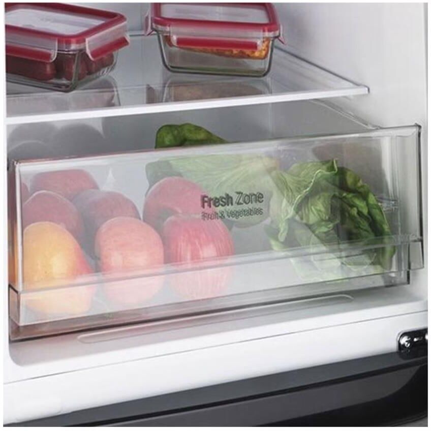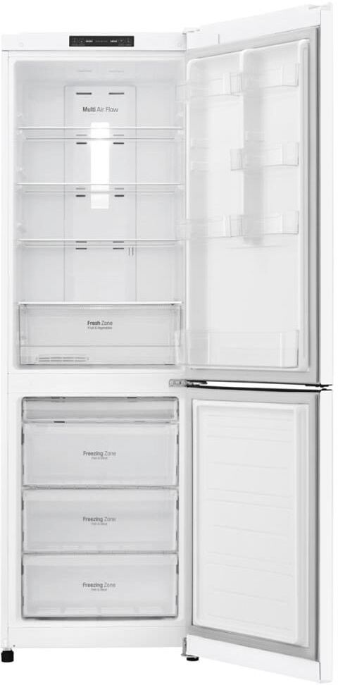 Габариты (ВхШхГ) 190,7х59,5х65,5см. No Frost. 2-камерный, морозилка внизу. Умный Инверторный компрессор. Класс А+. Общий объем 302л. (223/79). Материал полок стекло. Экспресс-заморозка Блокировка дисплея Время хранения продуктов при отключении энергопитания (ч) 16 Материал отделки двери PCM Цвет белый