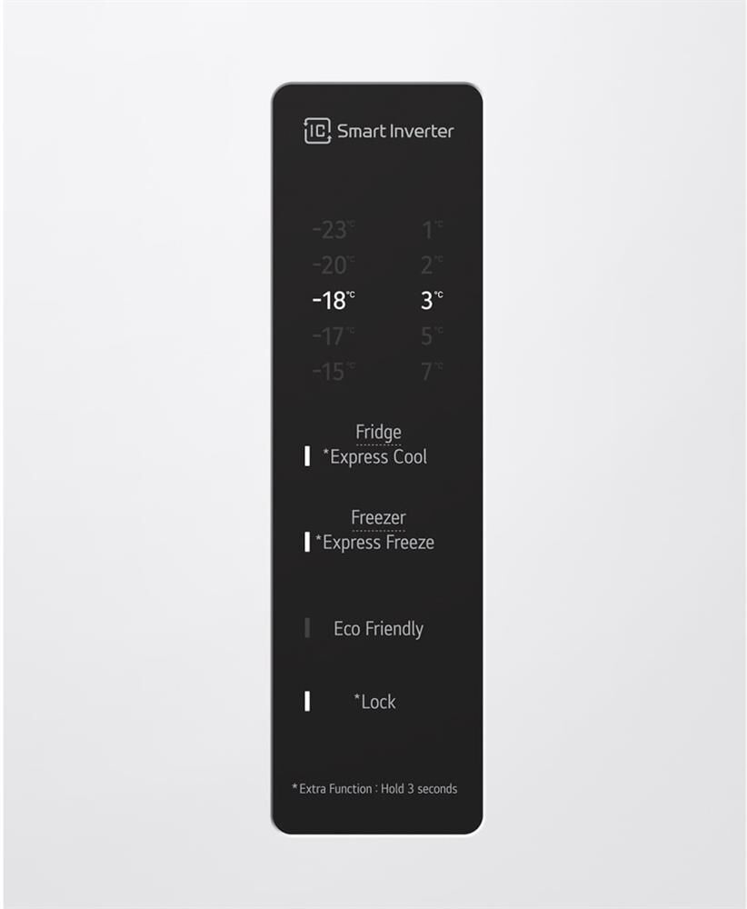 Габариты: ШхВхГ: 59.50х203х68.20 см * Цвет белый * Общий объем 419л. Полезный объем 365л (277+127) * Система охлаждения Total No Frost * Тип компрессора Умный Инверторный * Дисплей Кнопочный, LED * Класс энергоэффективности A+ * Хладагент R600a * Система многопоточного охлаждения Multi Air Flow * Климатический класс SN-ST *