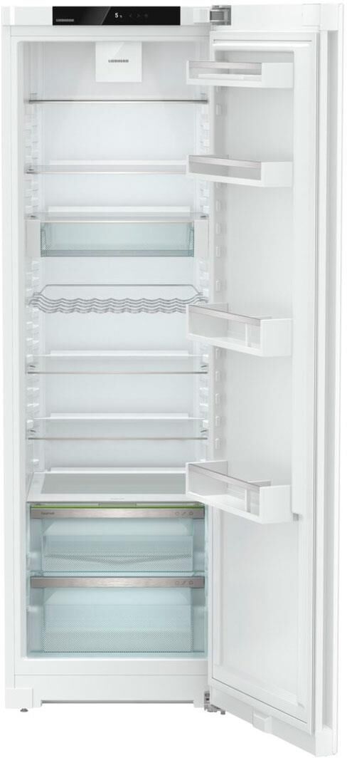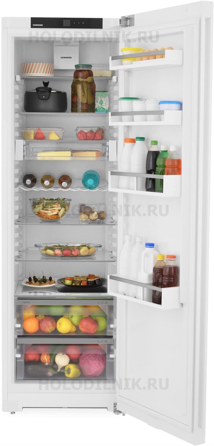 Холодильный шкаф с EasyFresh Общие данные: Размеры: высота (см): 185.5 ширина (см): 59.7 глубина (см): 67.5 Общий объем/ Полезный объем: Холодильника (л): 412/398 Холодильной камеры (л): 412/398 Класс энергопотребления: A+ Климатический класс: SN-T (от +10°С до +43°С) Количество компрессоров: 1 Тип компрессора: стандартный Годовое потребление энергии: 145 кВтч Цвет: белый Холодильное отделение: 7 полок из закаленного стекла, из них 6 регулируемых по высоте Количество полок на двери для хранения бутылок: 2 Количество полок на двери для хранения консервов: 2 Отделения в двери: Полка для бутылок и консервов Регулируемые по высоте полки на внутренней стороне двери: Ступенчатая регулировка Автоматическое оттаивание Светодиодное потолочное освещение Регулируемый диапазон температур: от +2 °C до +9 °C Климатические зоны: EasyFresh с универсальным ящиком Фильтр FreshAir: В вентиляторе Механизмы выдвижения ящиков: Встроенная направляющая выдвижных ящиков VarioSafe Полка для бутылок Лоток для яиц: 10 яиц Дополнительная