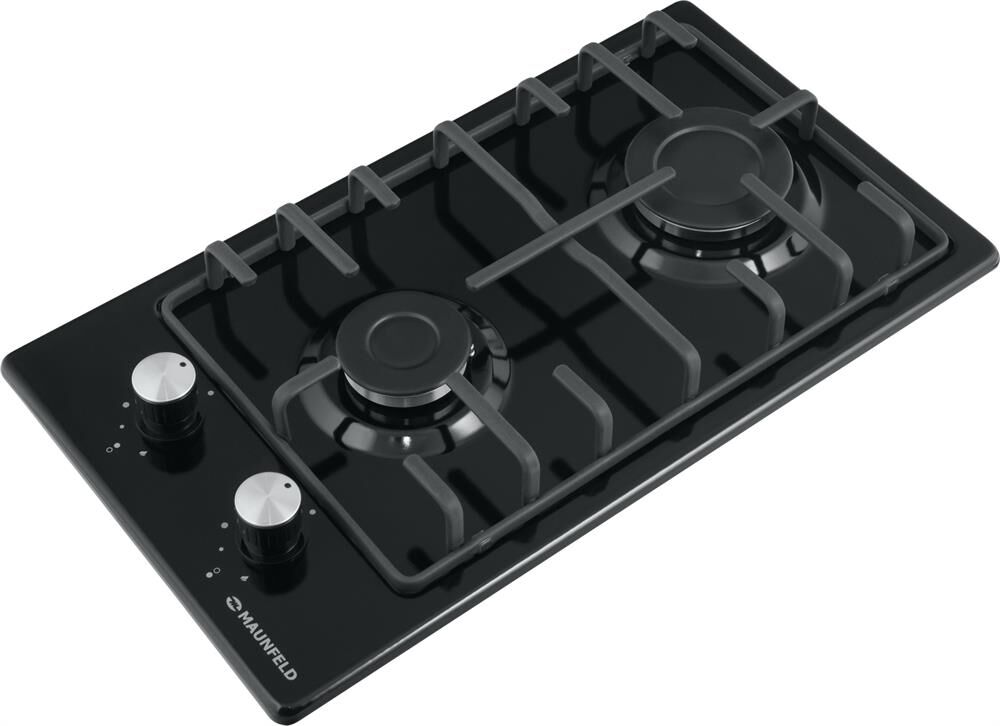 MAUNFELD Газовая варочная панель EGHE.32.3EBG, 2 конфорки, эмалированная сталь, черный
