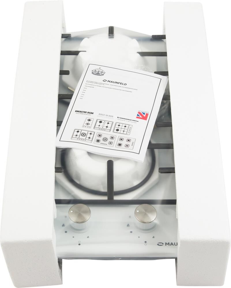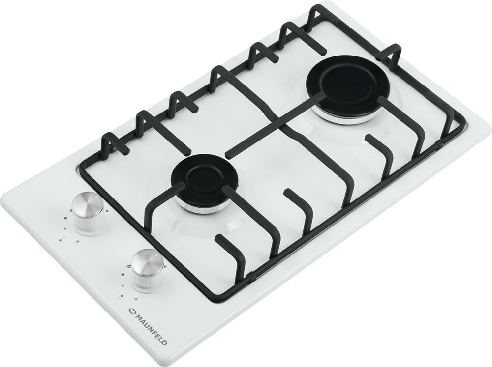 MAUNFELD Газовая варочная панель EGHE.32.3EWG, 2 конфорки, эмалированная сталь, белый