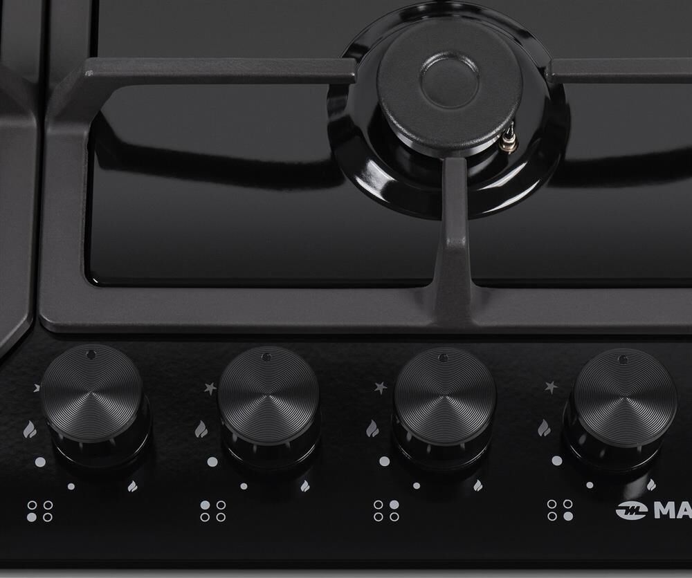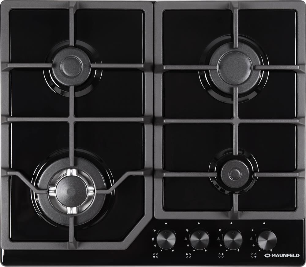 MAUNFELD Газовая варочная панель EGHE.64.43CB/G, 4 конфорки, эмалированная сталь, черный