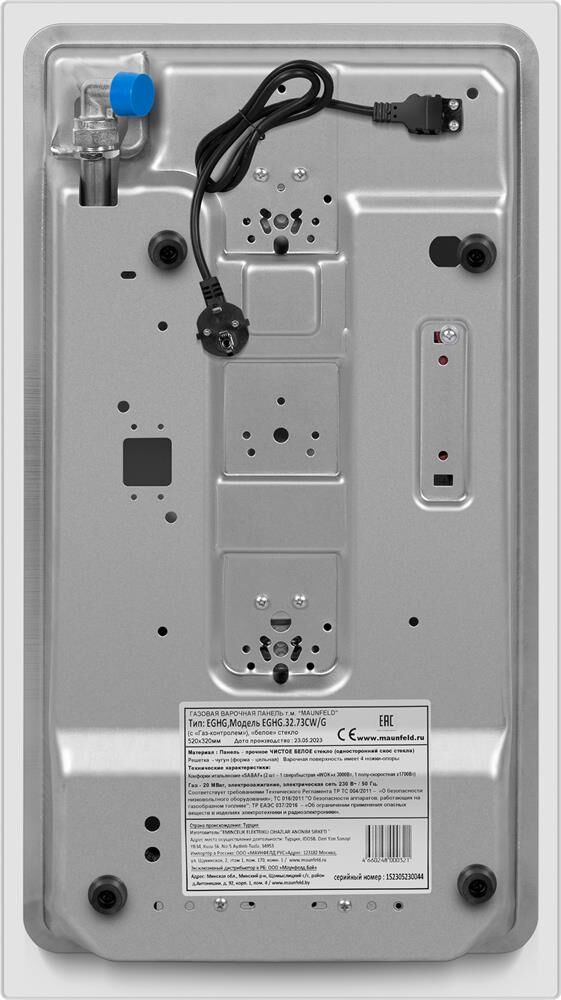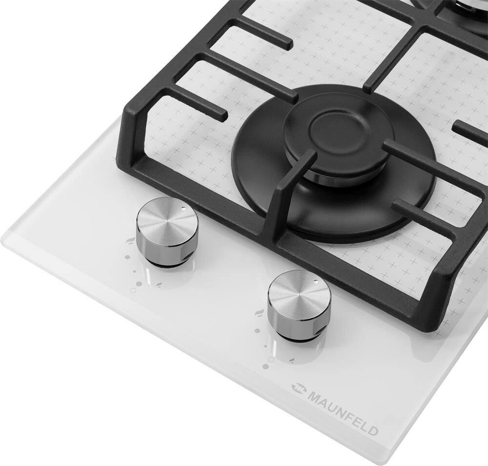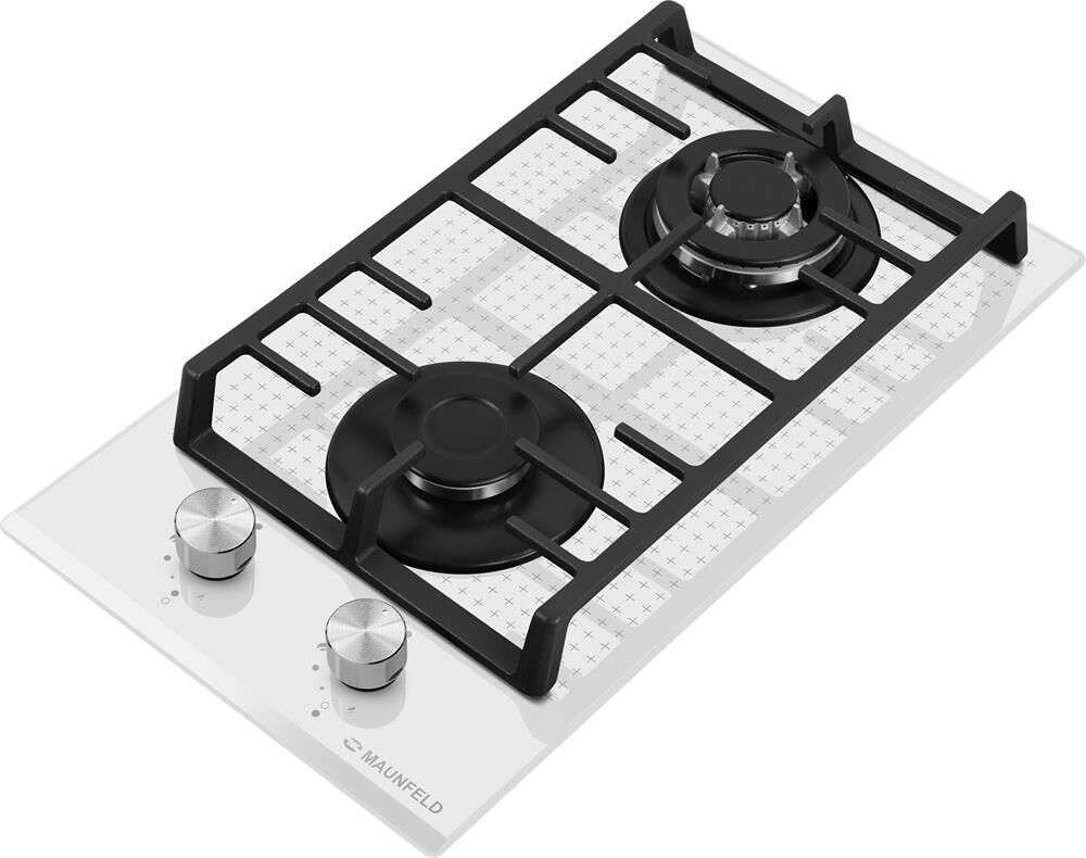 MAUNFELD Газовая варочная панель EGHG.32.73CW/G, 2 конфорки, закаленное стекло, белый