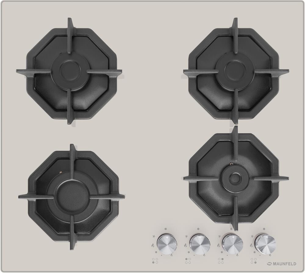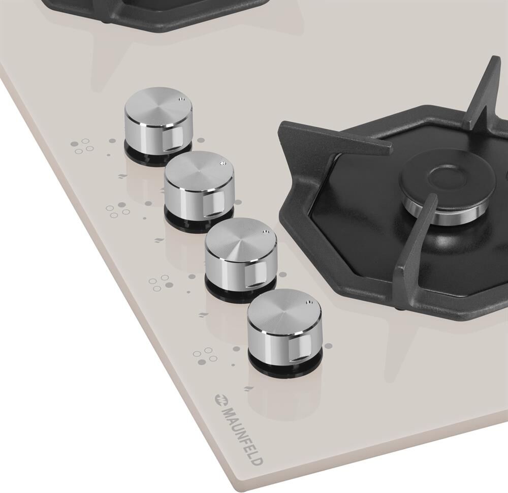 MAUNFELD Газовая варочная панель EGHG.64.2CBGG, 4 конфорки, закаленное стекло, бежевый
