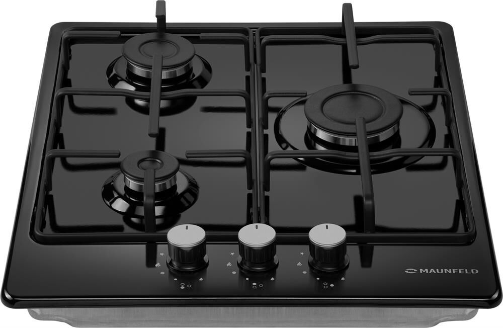 MAUNFELD Комбинированная варочная панель EGHE.43.3STS-EB, 3 конфорки, нержавеющая сталь, черный