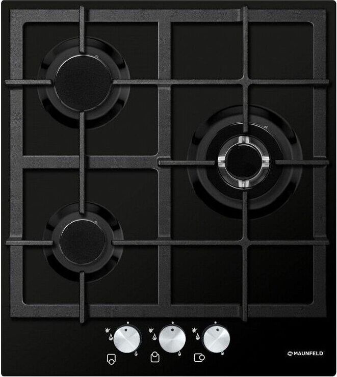 Газовая варочная панель. Габариты В/Ш/Г 5,1/44/51,5см. Габариты ниши для встраивания (Ш х Г) 41 х 48 см. Количество конфорок 3. Материал поверхности металл с эмалью. Дизайн (коллекция) Модерн. Цвет черный. Цвет фурнитуры серебристый. Решетки чугунные. Тип управления механическое. Элементы управления поворотные. Особенности элементов управления цельнометаллические полнотелые ручки. Электроподжиг автоматический. Газ-контроль. WOK-конфорка. Использование газа: баллонный газ (тип G30), магистральный.