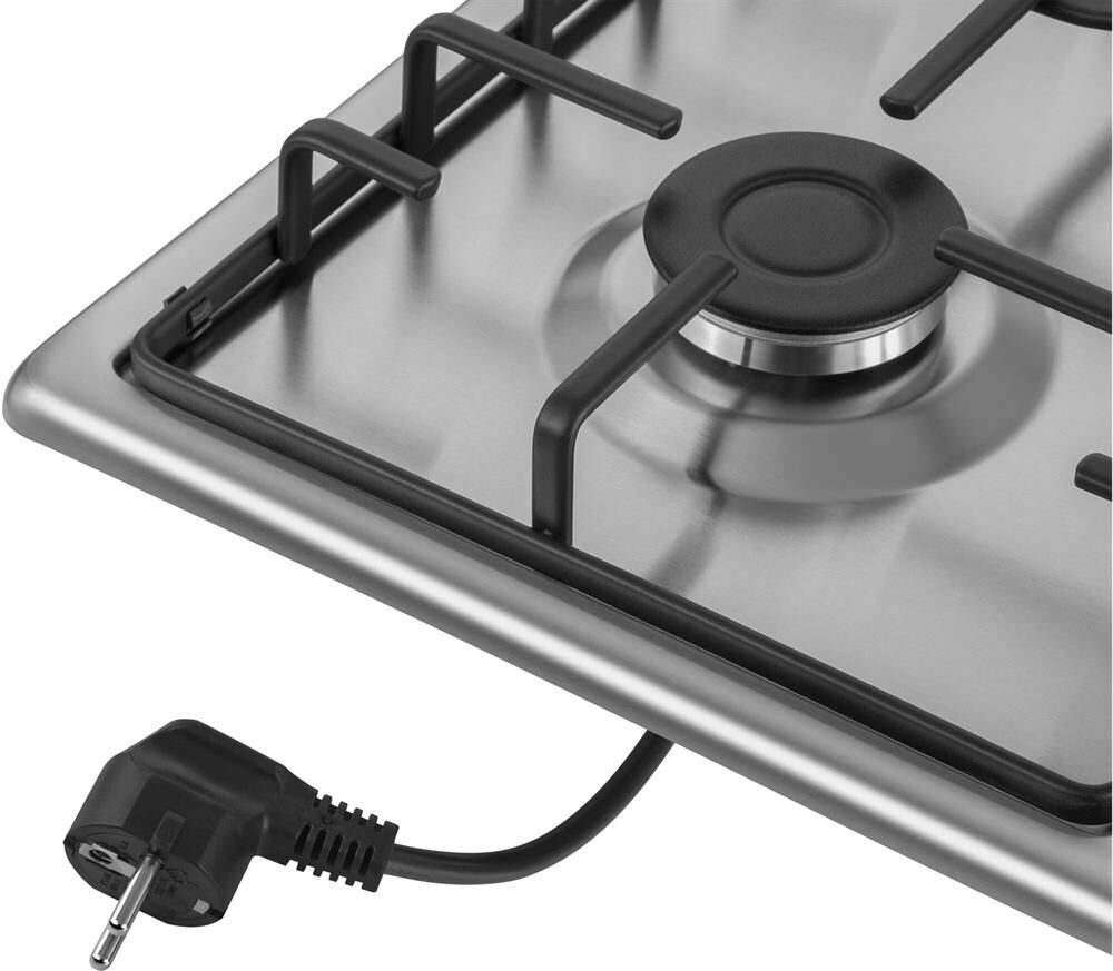 Цвет: Нержавеющая сталь Цвет фурнитуры: Черный/Стальной Тип управления: Механическое Тип варочной панели: Газовая Количество конфорок: 4 Мощность конфорок, Вт: 2600,1700,1700,1000 Электроподжиг: Да Газ-контроль: Да Материал поверхности: Нержавеющая сталь