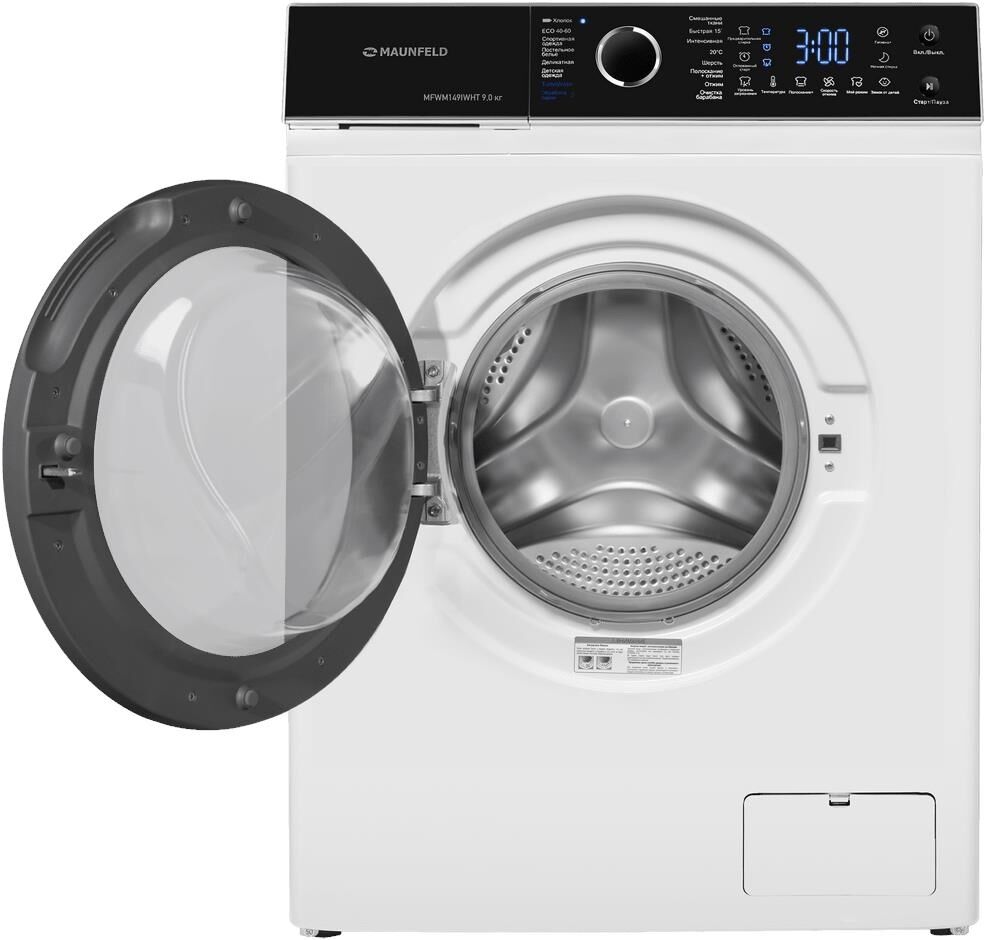 "Артикул: MFWM149IWHT Максимальная загрузка (стирка): 9 Максимальная скорость отжима, об/мин: 1 400 Тип по глубине: Полноразмерная Инверторный мотор: Да Количество режимов: 16 Тип управления: Сенсорное+поворотный переключатель Дисплей: Да Класс отжима: B