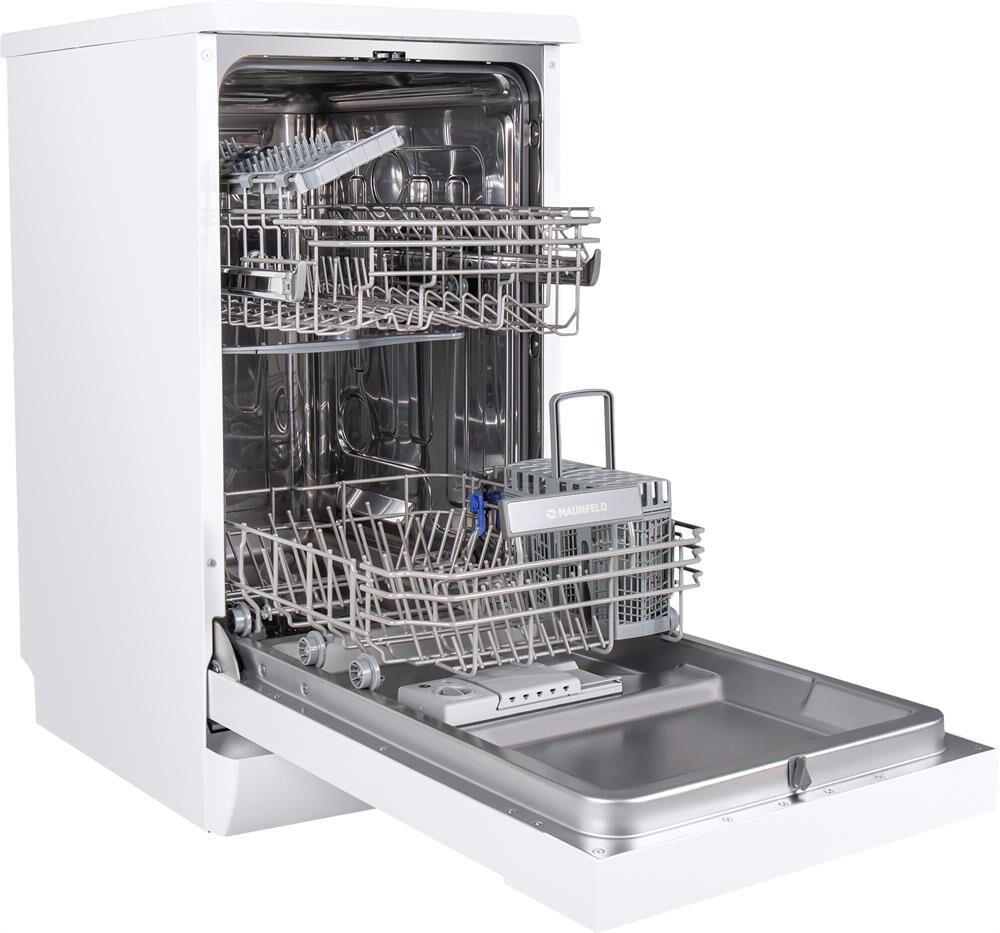 Узкая посудомоечная машина. Количество комплектов 9. Сушка конденсационная. Габариты В/Ш/Г/ 84,5/44,8/55см. Цвет белый. Элементы управления кнопки. Дисплей LED. Количество программ 5. Количество температурных режимов 4. Половинная загрузка. Отсрочка старта 1-24 часа. Количество корзин для посуды 2. Верхняя корзина регулируется по высоте. Корзина для столовых приборов мобильная. Защита от протечек полный AQUA-STOP. Максимальный расход воды за цикл, 9,5л. Класс энергопотребления А+. Уровень шума, 49Дб. Вес 13,8кг.