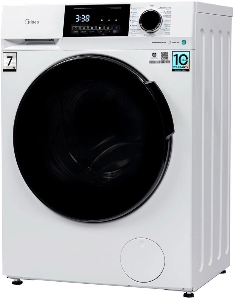 MIDEA Стиральная машина узкая MFC3712BSW40/W, с фронтальной загрузкой, 7кг, 1200об/мин, с паром, инв