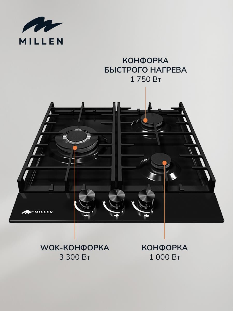 Количество зон нагрева: 3 Конфорки SABAF Конфорка WOK: 1х3300 Вт Конфорка быстрого нагрева: 1х1750 Вт Дополнительная конфорка: 1х1000 Вт Напряжение сети: 220-240 В ~50/60 Гц Материал поверхности: Эмаль Материал решёток: Чугун Термостойкие ручки Hitech Упр