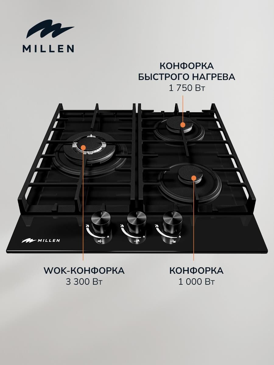Количество зон нагрева: 3 Конфорки SABAF Конфорка WOK: 1х3300 Вт Конфорка быстрого нагрева: 1х1750 Вт Дополнительная конфорка: 1х1000 Вт Напряжение сети: 220-240 В ~50/60 Гц Материал поверхности: Стекло Материал решёток: Чугун Термостойкие ручки Hitech Уп