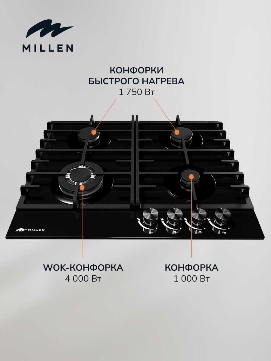 Количество зон нагрева: 4 Конфорки SABAF Конфорка WOK: 1х4000 Вт Конфорка быстрого нагрева: 2х1750 Вт Дополнительная конфорка: 1х1000 Вт Напряжение сети: 220-240 В ~50/60 Гц Материал поверхности: Стекло Материал решёток: Чугун Термостойкие ручки Hitech Уп